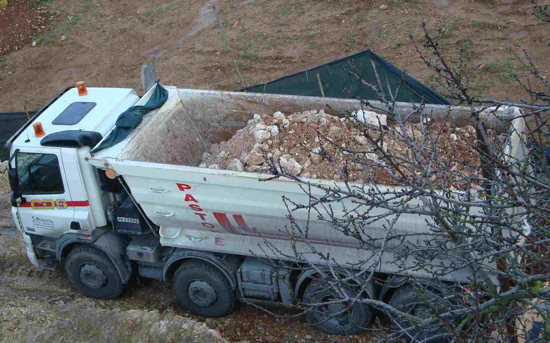 The following photos show SOIL being mixed with rock-spoil and carted away by the truckload. This despite permit conditions and related regulations obliging the developers to save the soil.