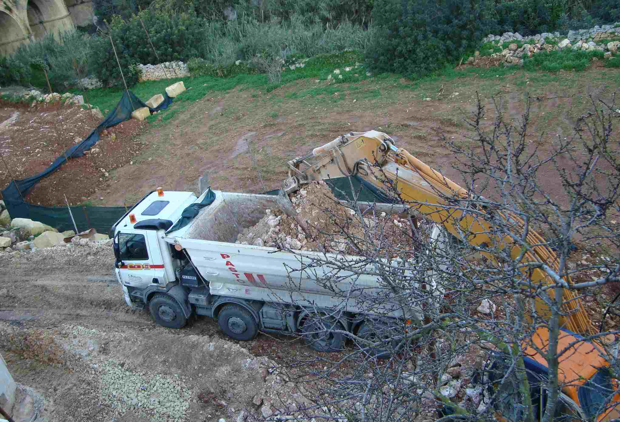 The following photos show SOIL being mixed with rock-spoil and carted away by the truckload. This despite permit conditions and related regulations obliging the developers to save the soil.